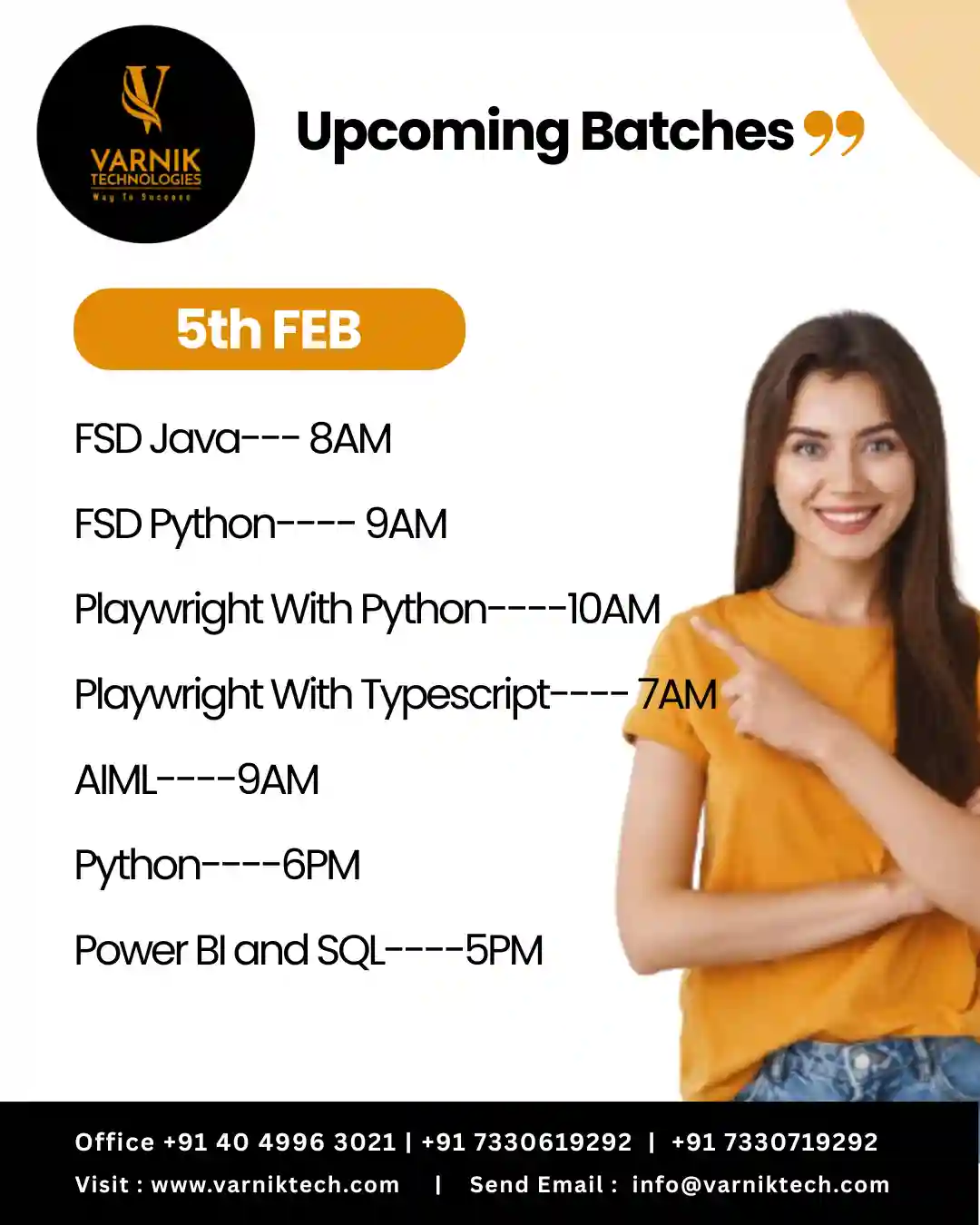 Varnik Technologies is a leading software training provider in India. We partner with companies and individuals imparting training and coaching which helps working professionals achieve their career goals. We are committed to student success.